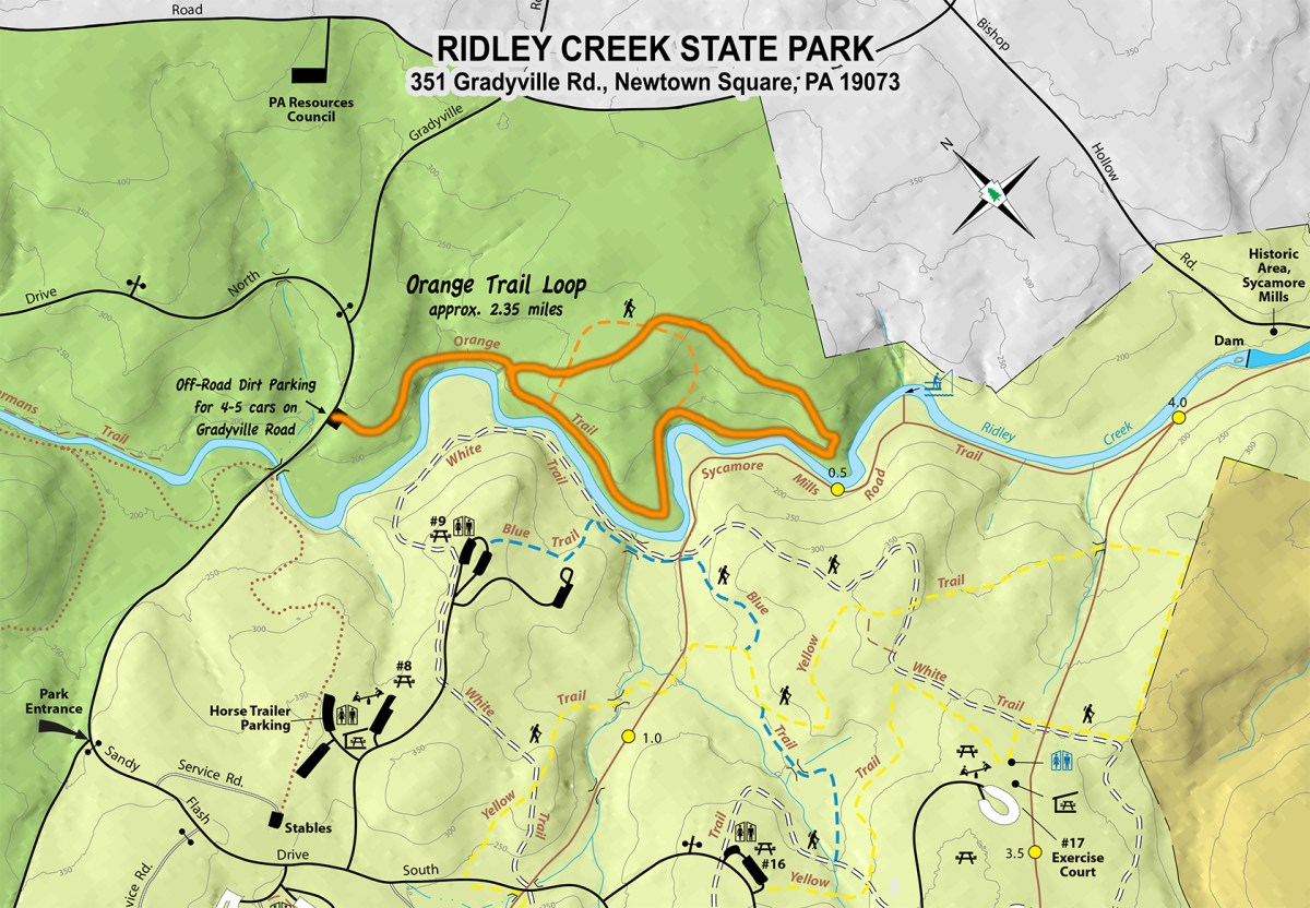 Oddly, the official DCNR map shows a shorter orange loop than what was marked in the woods, so I overlaid the outline of our actual hike on the above map.