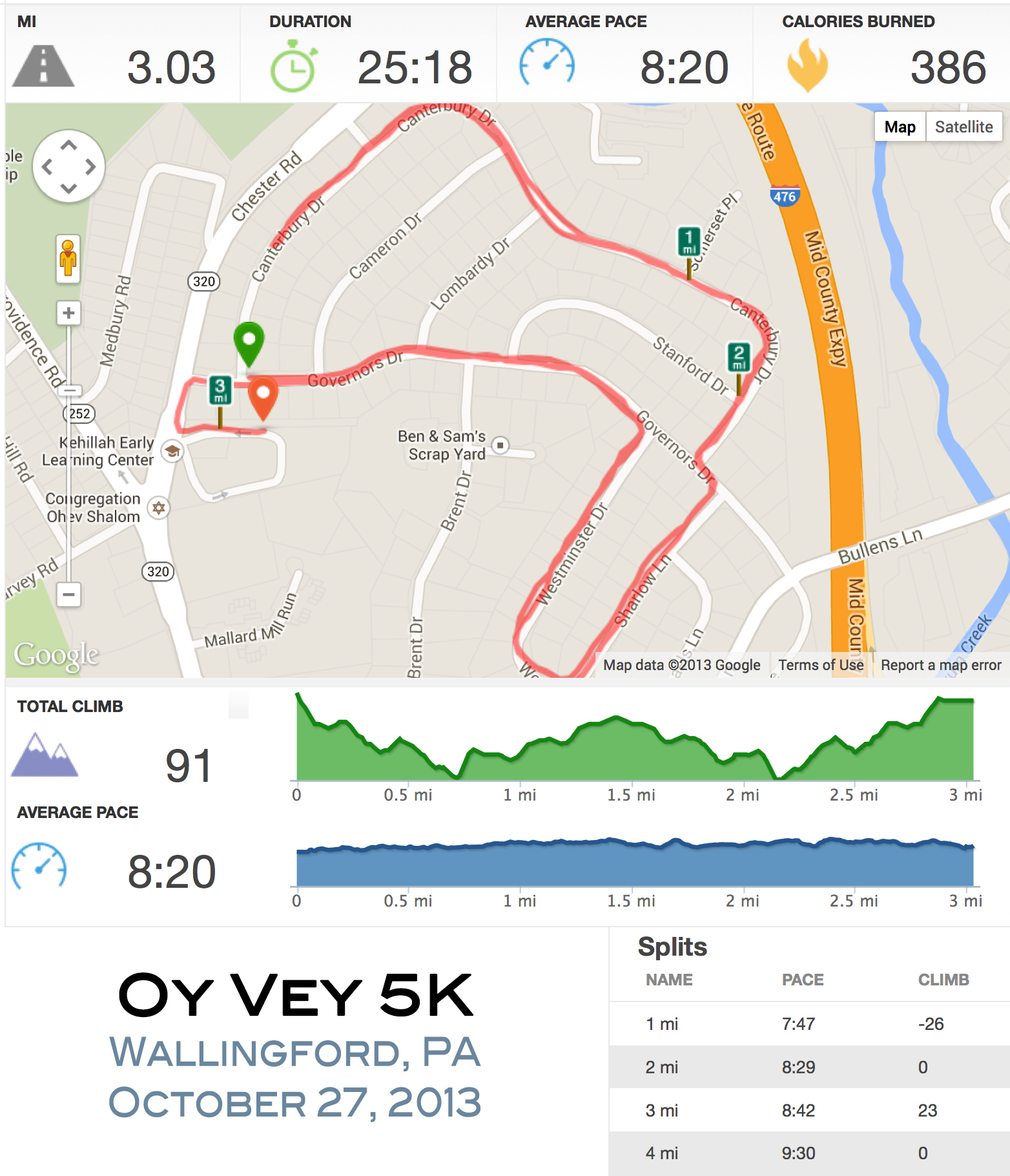 Oy Vey 5K Runkeeper Stats